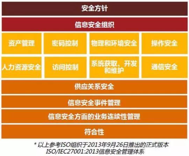ISO組織于2013年9月26日,推出了最新的版本ISO/IEC27001:2013信息安全管理體系標(biāo)準(zhǔn),其框架圖如下: