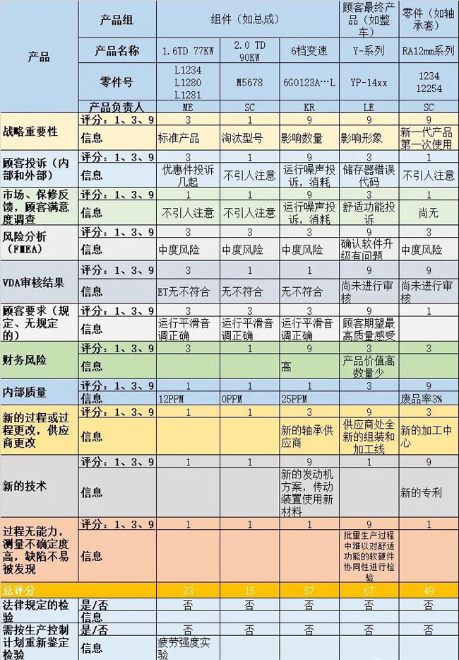 除了滿足顧客特殊要求,其他可以從以下方面進(jìn)行評(píng)估,并給與一定的權(quán)重打分,最終匯總得出總的風(fēng)險(xiǎn)值,并依據(jù)風(fēng)險(xiǎn)值確定最終是否需要展開(kāi)產(chǎn)品審核以及審核頻次。