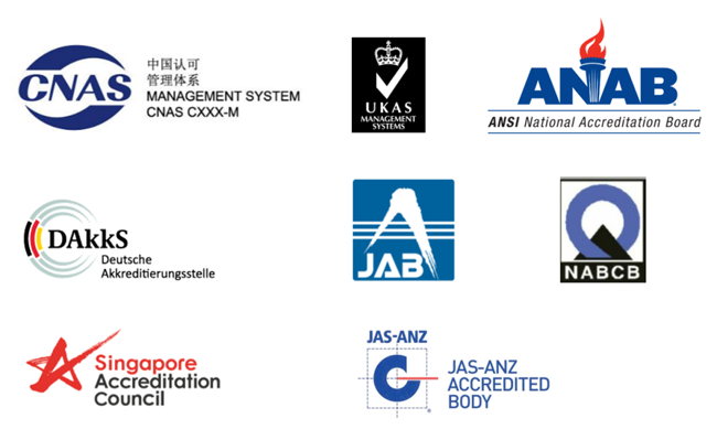 在其他國家也有對應的國家認可機構,其中在國際上比較有影響力的包括美國的ANAB、英國的UKAS、德國的DAkkS、日本的JAB、印度的NABCB、法國的COFRAC、澳大利亞和新西蘭的JAZ-ANZ、新加坡的SAC,等等。
