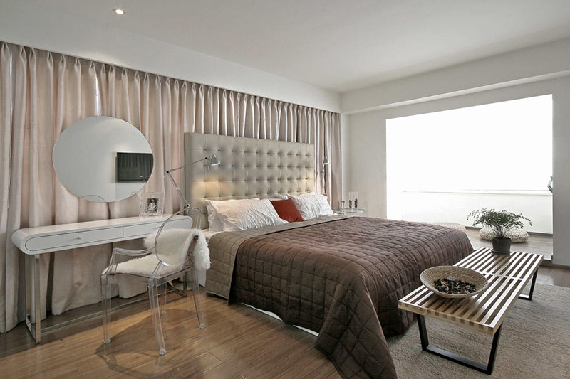 酒店臥室設計主要以白色和灰色為主調,極具現代感,一個清新優雅的開放式的室內空間。新鮮的感覺,照亮了整個空間,這里是經過漫長的一天后,休息和享受生活的地方.