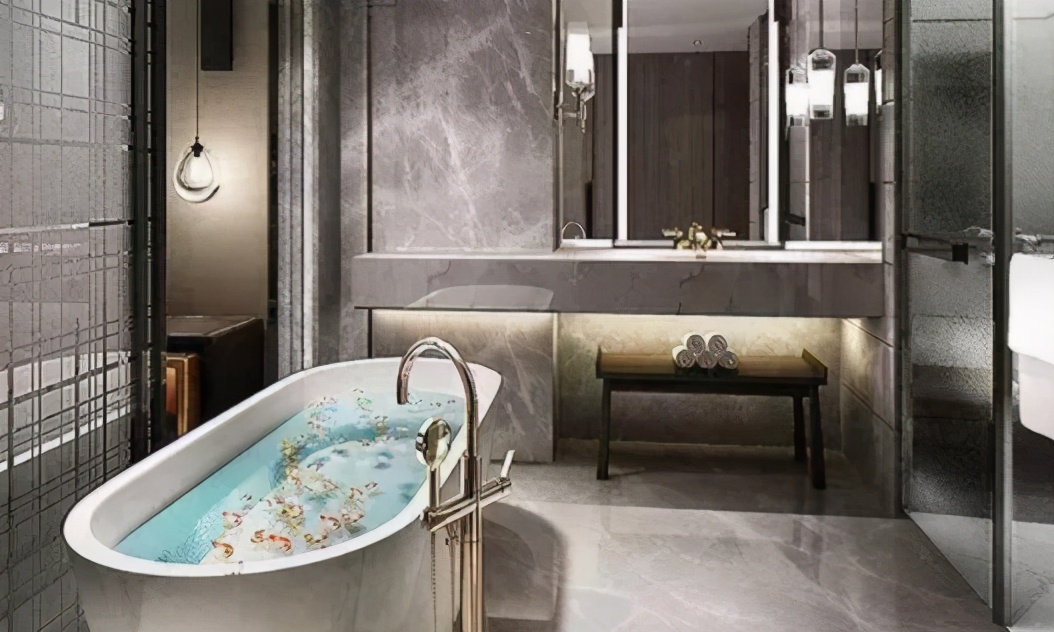 (1)打破“悶罐子”衛(wèi)生間設(shè)計的標準模式。利用大面積玻璃隔墻使衛(wèi)生間擁有自然采光的條件,同時增加衛(wèi)生間與客房之間的互動,使客人在使用衛(wèi)生間的過程中也可以獲得在客房中所能得到的便利,增強衛(wèi)生間的使用功能的外延。衛(wèi)生間內(nèi)三潔具成固定布局模式,缺少人性化。恭桶在衛(wèi)生間內(nèi)沿衛(wèi)生間空間四個角設(shè)置,但不設(shè)在門對面。