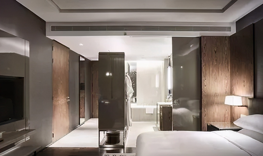 (5)對衛(wèi)生間噪音的控制。考慮到客人居住及運行時節(jié)能降耗要求,開間尺寸在4000-4500毫米,進深尺寸在7500-9000毫米,標準層高在3500毫米左右。應作好各空間之間隔斷,確保隔音效果與客人住店環(huán)境空氣質(zhì)量。上下衛(wèi)生間樓板之間、衛(wèi)生間在天花板以上四周應完全隔斷,否則影響客房區(qū)的空氣質(zhì)量,因為客人覺得客房內(nèi)空氣異常時,會開啟衛(wèi)生間內(nèi)排風扇,甚至整夜或離開客房也開著,這是浪費電能。客房門應內(nèi)縮350毫米,客房之間隔斷應采用二四墻隔斷。客房的窗戶尺寸適中即可,不要過分求大。落地窗對客房觀景效果有利,但能耗增加10%,如果檔次需要采用落地窗時,應該用中空玻璃。