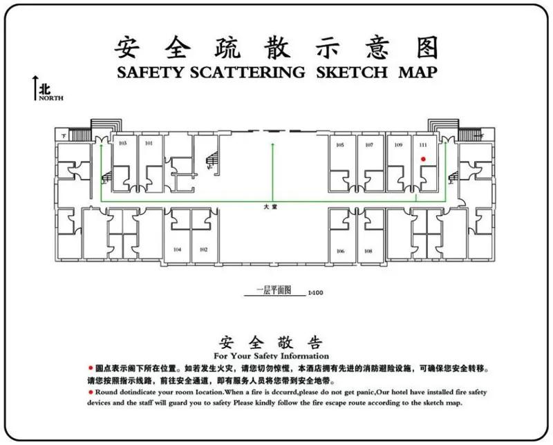 還需強調的是:酒店動線設計要嚴格遵守酒店建筑消防安全規范。把“安全第一”作為酒店流線設計的重中之重。為了防火防災、消除隱患、便于疏散人群,在建筑防火分區、房間內外距離、安全逃生門的安裝和開啟方向,以及疏散指引、疏散通道的設計上都要按相關法律法規進行規范設計,滿足緊急情況下人員迅速開啟、快捷疏散的需要。