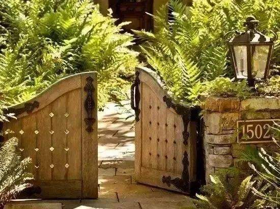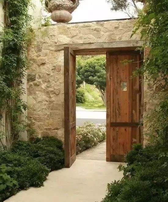 矮墻、木門、老舊物件組合的入口場景