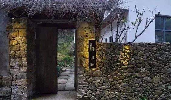 毛石、暖光、茅草,粗獷而不失細節的民宿入口