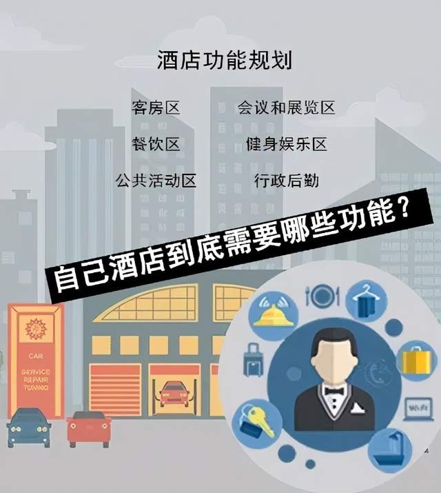 酒店的功能決定著您的利潤,功能好比人的五臟六腑,功能組織得合理,他就能發揮最佳經濟效益,功能并不是大而全就好,功能的大小要看周邊的市場、酒店所在區域。比如:客房的數量、酒店自身的條件等。