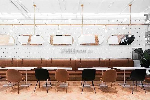 ②餐飲店的隔斷一般選用一些展示架或裝飾品屏風等不明顯的隔斷,既區分了空間,在一定程度上提升了美觀度,同時也不會讓空間看起來很密閉。
