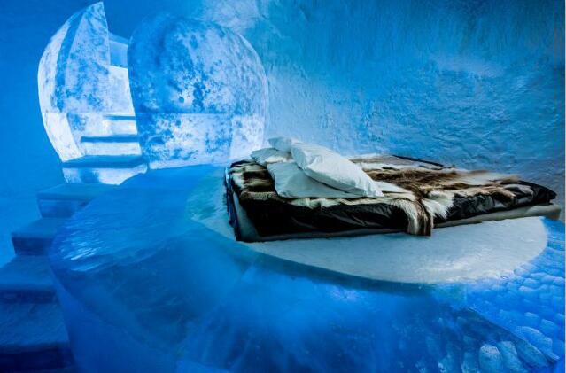 住在這里雖然寒冷卻也別有樂趣。客人可以享受豐盛的早餐、加香料的熱葡萄酒,甚至還可以在冰天雪地里泡熱水澡。