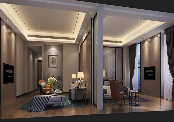 酒店裝飾主要指確定墻面、地面、頂棚的材質、花色、圖案、紋理及做法。室內墻面裝飾的作用是保護墻體,滿足室內使用功能要求,同時提供美觀、整潔的生活環境。室內墻面與人的距離近,因而所用的裝飾材料不能有氣味,人接觸后不能污染衣物,質感應柔和細膩。居室內的裝飾最好有一定的透氣性。地面或頂棚裝飾除美觀外還有隔音、防潮等作用,材料的選擇應根據使用功能的需要,并與室內裝飾的整體協調。