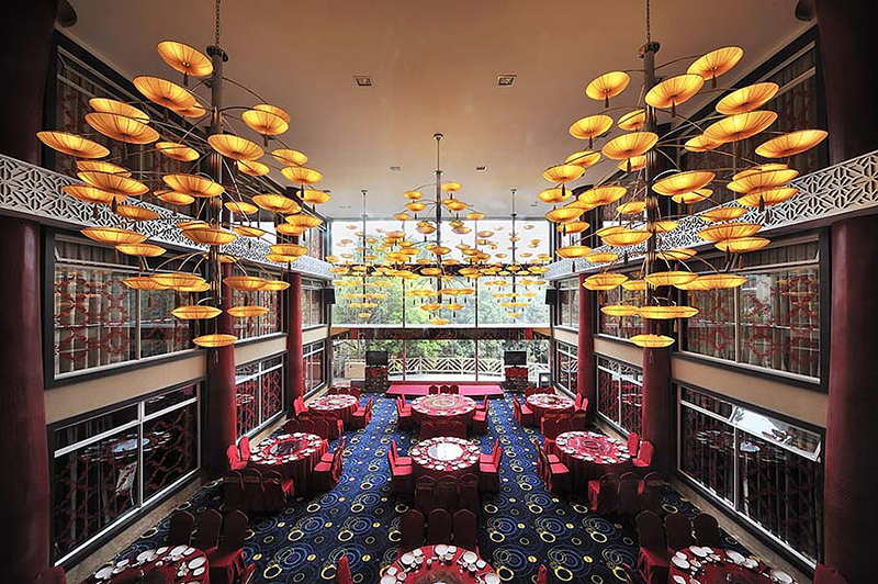 項目說明:本案例給人最大的感覺就是顏色的對比非常的強烈,這個設計的重點就是通過強烈的顏色對比來說實現個性的目的,雖然顏色對比強烈,但是并沒有給人非常的燥的感覺。將酒樓的背景墻和屋頂連在一起,形成一個整體的設計,再配上節簡單的桌椅,個性酒樓設計顏色對比強烈,但是整體感覺非常舒服。