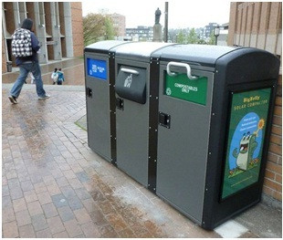 一周才被裝滿的大胃王——太陽能壓縮垃圾桶