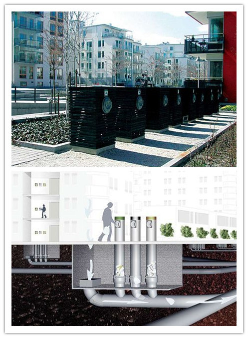 日本的垃圾處理技術讓人印象深刻,但要說到回收速度,瑞典的漢馬貝濱海新城則更勝一籌。在這里,街邊的分類垃圾桶就是通往垃圾回收處理廠的直連豎井,每天早上和傍晚,抽氣機和垃圾控制閥門都會被開啟,讓垃圾以70公里的時速奔向郊區的垃圾綜合處理站進行處理。由于被丟棄時垃圾已經被分為七類,被送到垃圾處理站的垃圾幾乎不必分揀——可燃物、紙類、廚余垃圾等便立刻各自輪回充分貢獻價值了。在這里,垃圾從扔進垃圾桶到被回收利用,最快只需要15分鐘。這種處理迅速的環保垃圾桶還曾經出現在2010年上海世博園內,因其綠色的造型還被人們稱作“綠芽”。它分為可回收和其他兩類垃圾,這款垃圾桶有自動控制設備,當儲存的垃圾達到一定量后,將聯通地下的管道網絡,通過強大的抽風機將垃圾“吸”到近千米外的“垃圾收集站”。