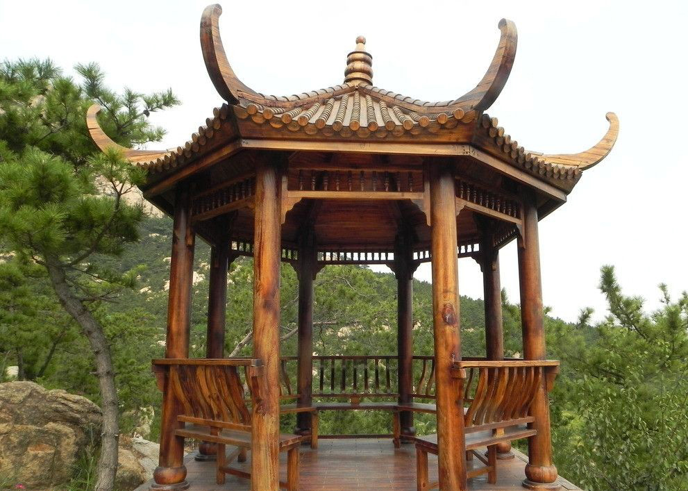 戶外景觀涼亭結構體系的建筑,所以涼亭也大多是木結構的。木構的涼亭,以木構架琉璃瓦頂和木構黛瓦頂形式最為常見。前者為皇家建筑和壇廟宗教建筑中所特有,富麗堂皇,色彩濃艷。而后者則是中國古典亭榭的主導,或質樸莊重,或典雅清逸,遍及大江南北,是中國古典涼亭的代表形式。此外,木結構的涼亭,也有做成片石項、鐵皮頂和灰土項的,不過一般比較少見,屬于較為特殊的形制。