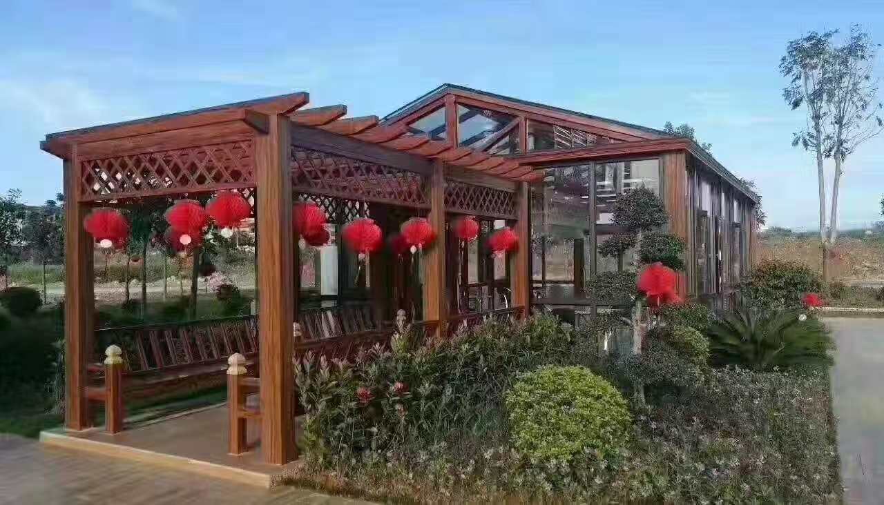 首先我們來看一下外觀優勢:花梨手感木紋鋁型材外觀精致,木紋圖案豐厚,仿木效果逼真,不褪色,具有很好的視覺效果,無光污染,自凈才能強,可以滿足人們原生態、仿自然、回歸大自然、人類與自然調和統一的種種需求與期盼。鋁合金葡萄架,鋁合金花架,景觀廊架。