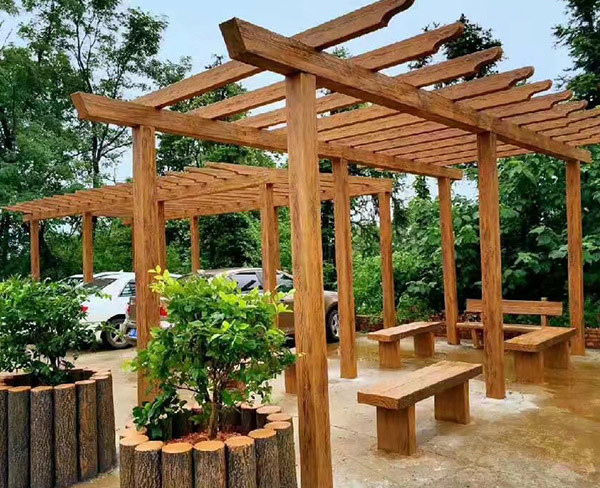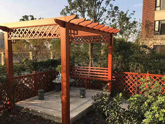 在平面構圖的形式上和立面造型、色彩的表現上,都有獨立或相對獨立布置的設計特點,加之與攀緣植物的密切結合,就構成了極具特色的、將硬質景觀和軟質景觀融合在一起的景觀形式。因此,無論是獨立成景的鋁合金葡萄架形式,還是依附于建筑物的配景形式鋁合金葡萄架,都具有積極的景觀效果。