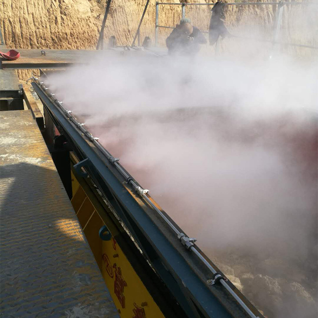 為了高效解決煤場揚塵問題,山東、河北、江蘇、安徽、河南、陜西等地跟多煤場都采用了煤場噴淋降塵系統,該系統主要的特點就是可以從源頭抑制粉塵污染。一般煤場輸煤皮帶是物料輸送的主要場所,在皮帶轉運處,會產生大量的粉塵污染,噴霧系統可以在運輸皮帶上安裝噴霧管道,在粉塵產生的源頭實現降塵效果。