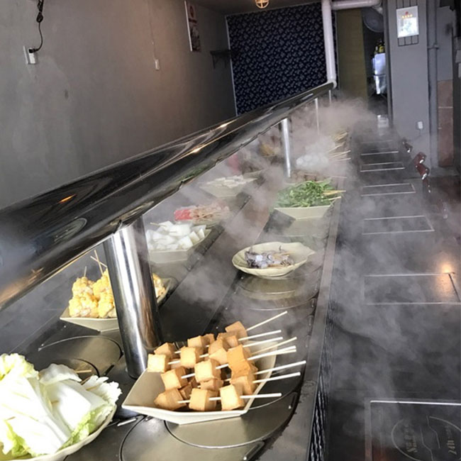 火鍋店夏季是怎樣保存那些蔬菜、肉類等食物的? 蔬菜用保鮮柜,肉類冷凍的冰箱。要想達到保鮮的好效果就是要再配置噴霧加濕器。在自助火鍋店里保存蔬菜重要的就是要留住水分,同時又得避免葉片腐爛,將葉片噴點水是保鮮的較好方法, 以直立的姿勢莖部朝下放在背陽處。火鍋店蔬菜專用加濕器適宜于各種綠葉蔬菜、水果、鮮肉、生鮮貨架展示柜、冷藏展示柜、冷風柜、面包柜等等。加濕作用:保持果蔬脆感、口感、顏色、風味,防止脫水、枯萎、失重、失鮮、提高耐貯性和抗病性,延長衰老,果蔬表面無水滴,減少。