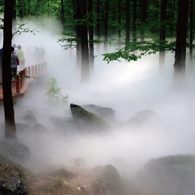 云霧景觀向來給人的感覺就是朦朦朧朧,有一種神秘美感。像是黃山云霧、吉林霧淞、峨眉云海、九江煙南、六橋煙柳等等,都是以霧聞名的景點,但是,自然的霧景需要在特殊的地理、氣候條件下才能顯現,很多時候這些美景是可望而不及的。為了打造云霧景觀,很多景區采用了人造霧設備。