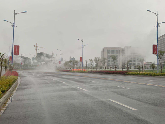 由于噴霧系統噴灑出來的水霧是微米級別的,非常的細膩,完全不用擔心會有水珠產生,即使水霧接觸到人的皮膚,也只會有一種涼涼的感覺,不會有濕濕的觸感。更重要的是采用噴霧系統可以節省大量的人力物力,不用每天安排工作人員開車進行灑水作業,它擁有的智能化控制系統,可以自動感應,實現高效率作業。