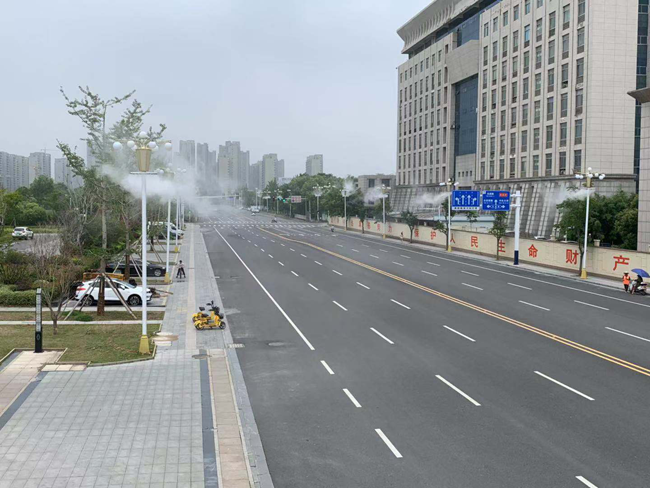 路燈噴霧系統除了具有降塵、除霾、降溫、加濕的作用外,更是為城市建設添加了別樣的風采,細膩的水霧從高處飄散而下,結合路燈的燈光效果,在夜晚也是一道靚麗的風景線。