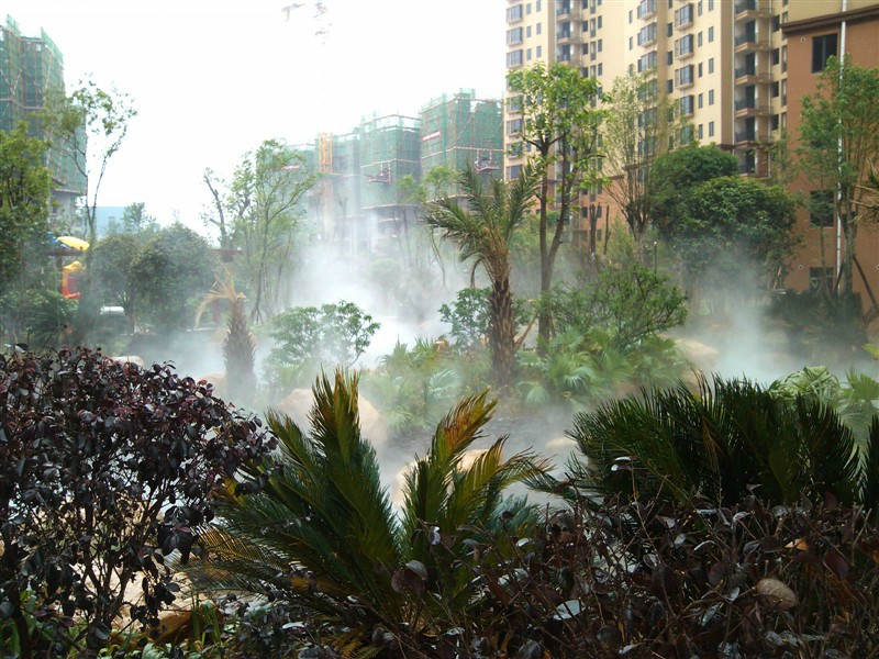 氣霧狀的霧分子,能有效吸收空氣熱量,降低局部環(huán)境溫度,其低廉的運營成本,有效的降溫效果,已經(jīng)在世博會及諸多景點進行了廣泛的運用和認可,已經(jīng)成為公共空間、小區(qū)等室外降溫的新元素。