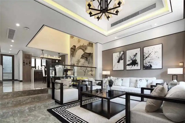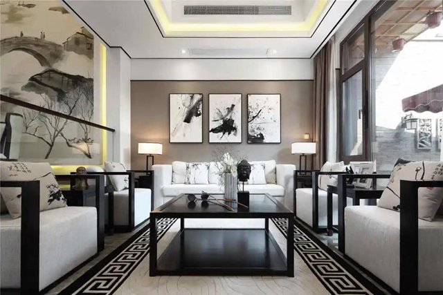 直線裝飾在空間中的使用,不僅反映出現代人追求簡單生活的居住要求,更迎合了中式家具追求內斂、質樸的設計風格,使“新中式”更加實用、更富現代感。