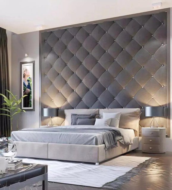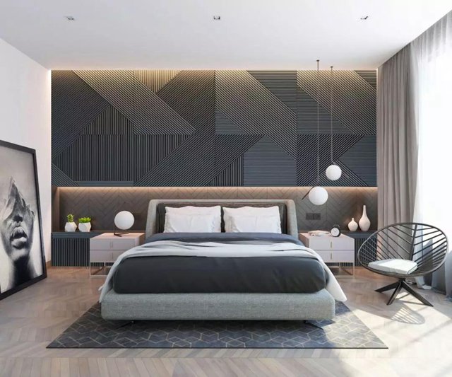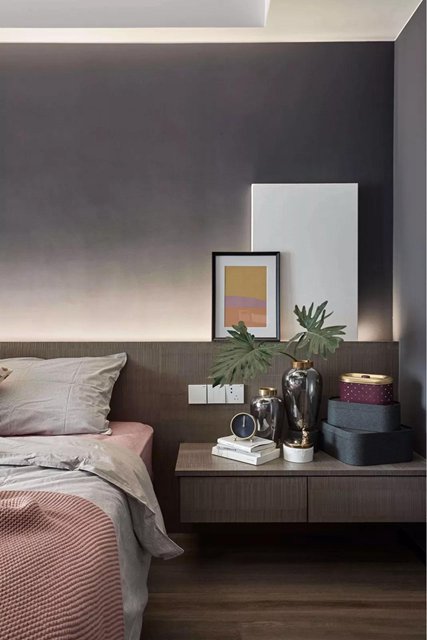 軟包背景墻所使用的材質柔軟細膩,比較柔和、舒緩,能夠營造出非常愜意的睡眠空間,讓臥室顯得更加高雅舒適,同時凸顯主人極為高雅的家居品味。軟包的材質造型、花樣也都不拘一格,可以根據自己的喜好與需求來定。