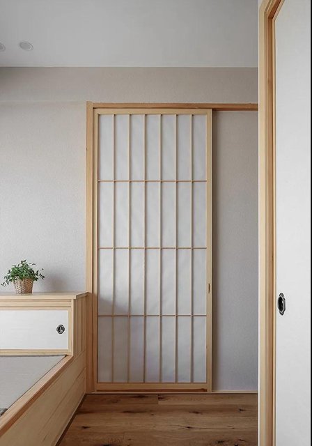 門庭處下沉5cm,進出的鞋子都可以在這里更換,這也是傳統日式的做法。