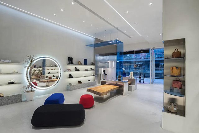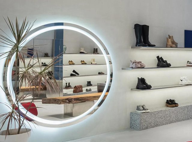 為了實現與傳統店鋪的差異化,設計師通過擴大櫥窗區面積,銷售區域后移的手法,使整個空間具有靈活性。