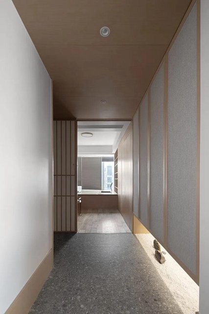 客廳中不斷出現的木,都展現著它本身的模樣。木色的深淺、木紋的走向各不相同,于是千萬種風情就鋪展開來。薄紗軟榻,等待清風徐來。