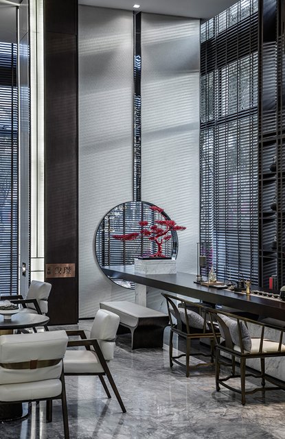 水吧空間設(shè)計(jì)呈現(xiàn)天然形態(tài)之美,現(xiàn)代元素下的中式營(yíng)銷(xiāo)中心,每一處都盡顯優(yōu)雅。