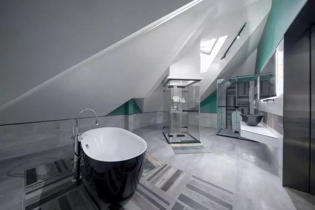 三層是主人臥室與兩個臥室。四層是閣樓,是大女兒的臥室,也是開放式的格局,由斜面的屋頂結構所創造的空間感非常獨特,天窗的采光方式及地面往上的漫反射光增加了神秘浪漫的感覺,看書、寢臥、衛浴、衣帽等功能同處一個開放的空間格局之中,自由、溫馨又有充滿個性。