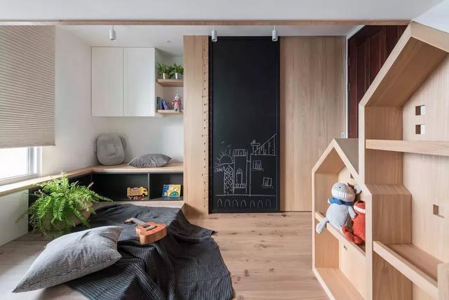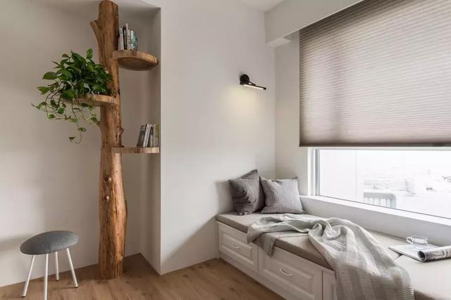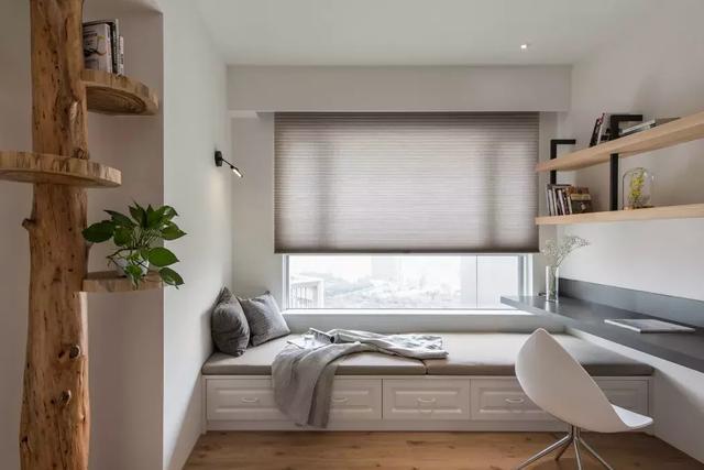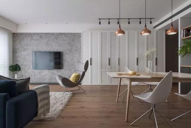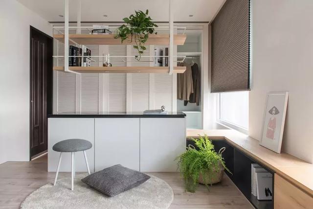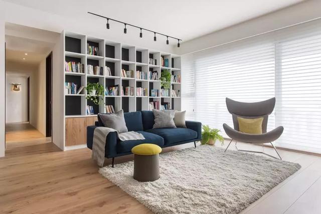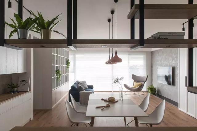 本案采用白色基調,結合木本色與少量深藍色,加入點綴黃,空間頓時靈動起來。