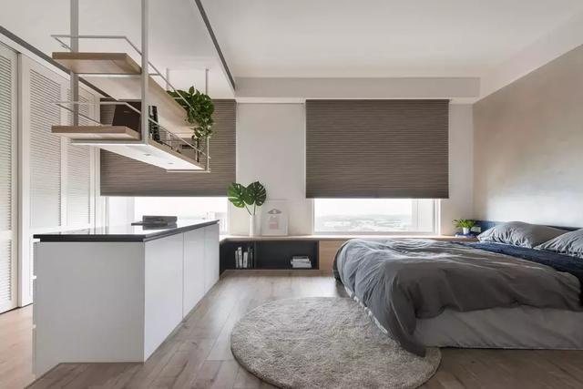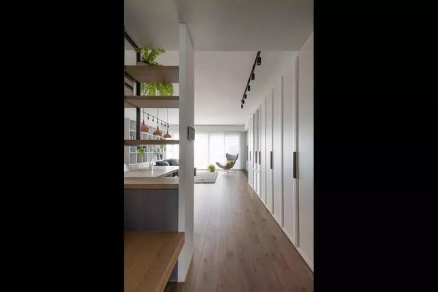空間非常簡潔,柜子,地毯,墻面,都用了相似色,保持整個設計的一致性。