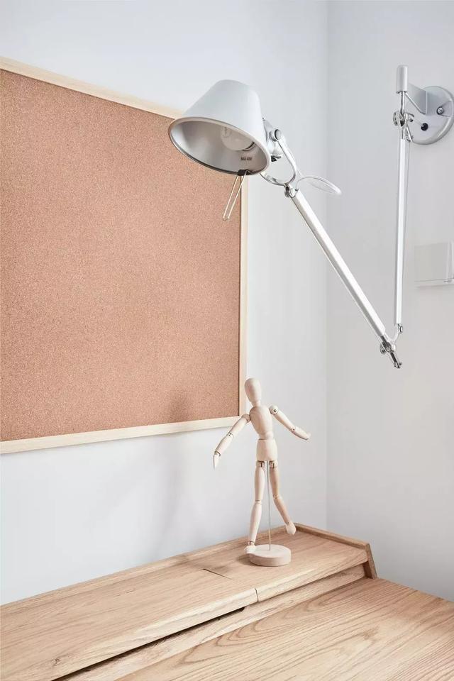 工業風的壁燈,燈泡瓦數不高,入夜后氛圍很棒。用掛畫擺脫無聊墻面。