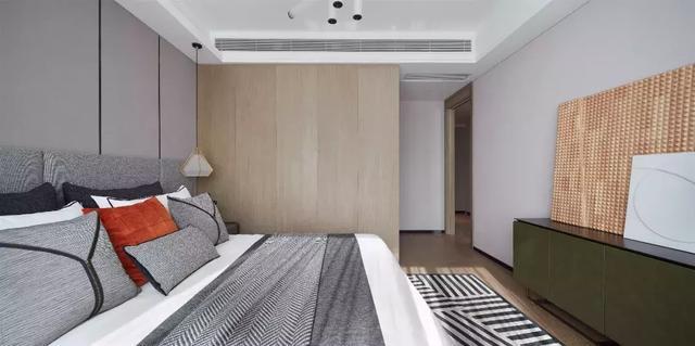 延續(xù)簡約設(shè)計(jì)手法,設(shè)計(jì)師在強(qiáng)調(diào)布局設(shè)計(jì)的合理性同時(shí)增加對(duì)臥室細(xì)節(jié)的刻畫。暖灰色調(diào)與愛馬仕橙及金色的演繹,在微瀾的日光下依然流露出低調(diào)有品質(zhì)的生活主張;而落到細(xì)處的生活,也不過是聽得見的云雀和鳴,看得見的溫暖織物,以及感受得到的那份洋溢明媚的幸福感。