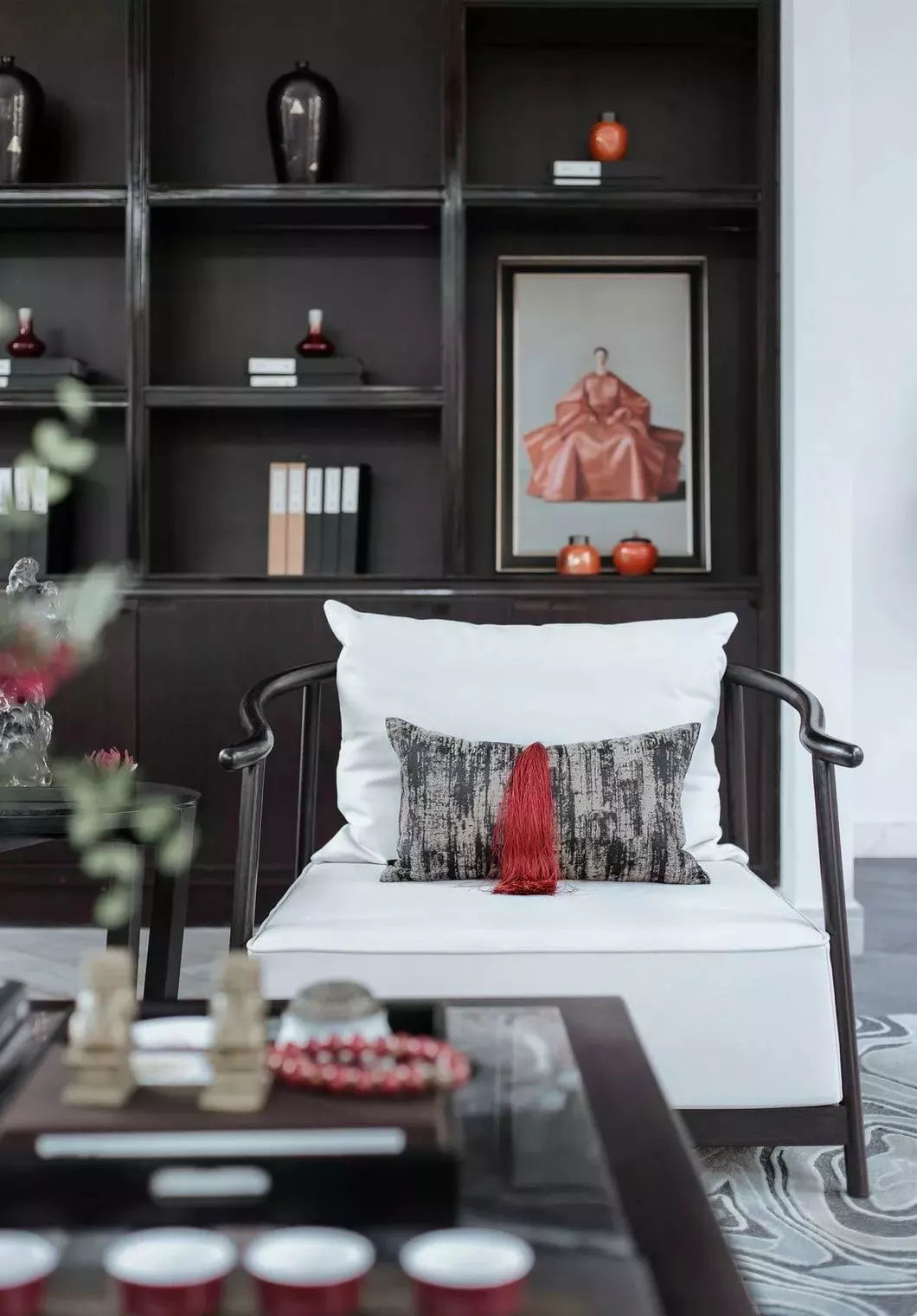 從東方文化中汲取靈感,重新解讀傳統與傳承。在西方設計界流傳著一個觀點:“沒有中國元素,就沒有貴氣。”中式風格的魅力可見一斑。紅色宜作為空間的主題色或點綴色,最好是新中式家居裝飾本身的色調,以強化裝飾效果,背景色最好是黑白灰中性色。