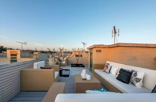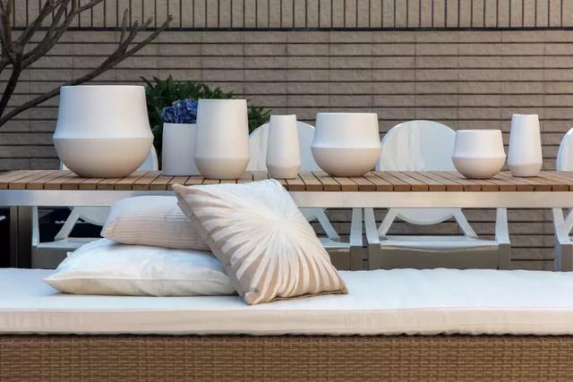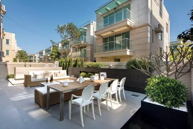 庭院的木質家具搭配著金屬質感的擺設,為一樓外的庭院營造出古典與現代的完美融合。綠意盎然的植物點綴其中更是打造出郁郁蔥蔥的戶外景觀和豪華的室內外生活體驗。步入主臥,流線型的架構、輕松的柔和色調配之簡單的裝飾畫,體現了極簡主義塑造地簡潔高品味風格。