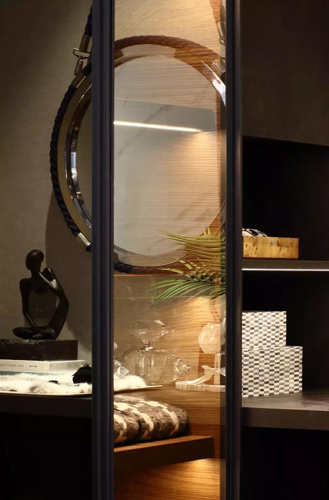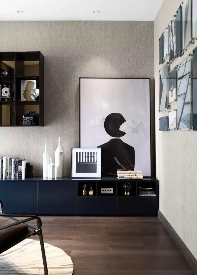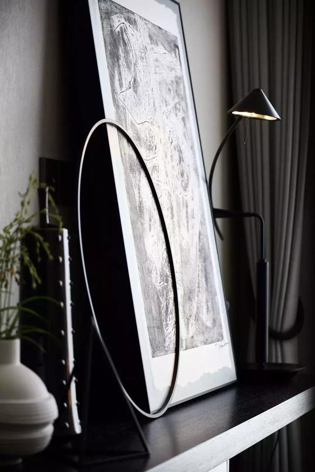 設計在現代理性中透射出人文藝術的溫度,以高級灰為肌底的空間,予人冷靜安謐的視覺感受,輕盈的灰藍色裝點其上,猶如室外穿透紗簾的陽光那般地柔和,又如幽藍色海平面一樣的深邃寧靜,自然的氣韻在此間靜謐地生長,讓內心得以片刻的安放與休憩。