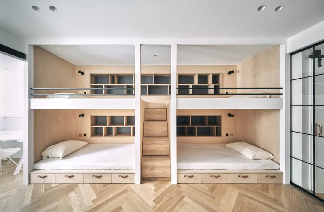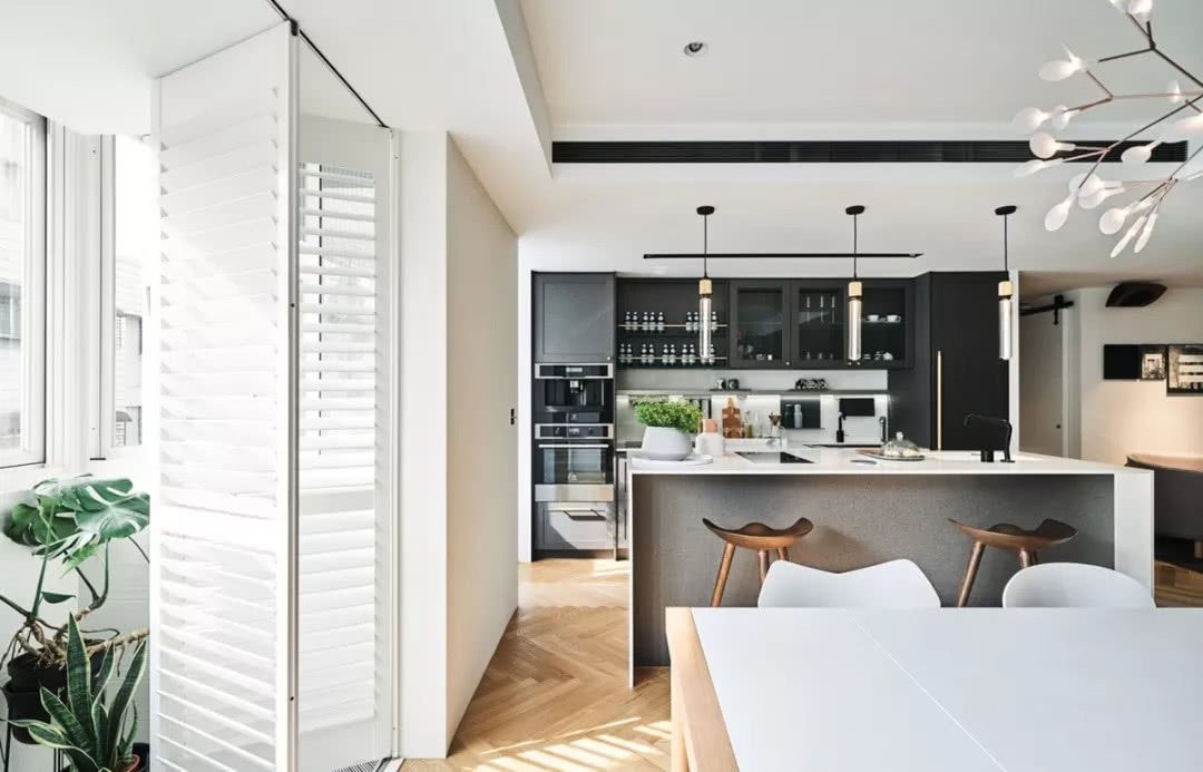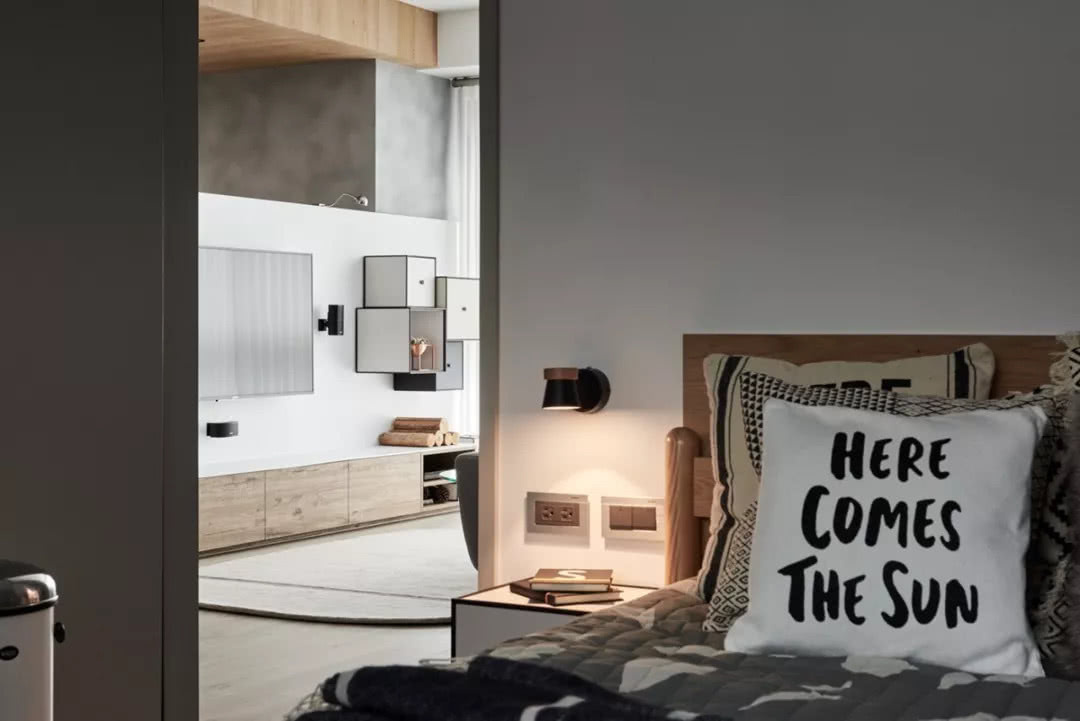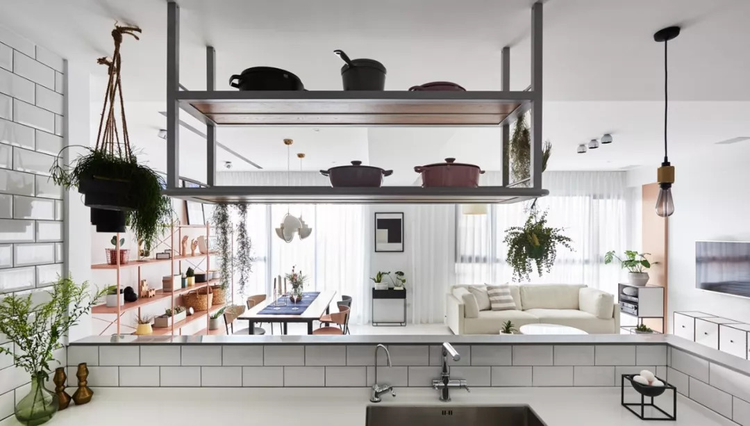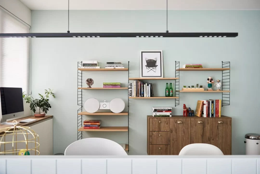 設計師深知儲物對于生活的重要性,所以在墻壁以及柜體上盡可能的做出收納區,幾盆綠植,幾本書籍,豐富了生活與視野,讓空間也可以變得有趣,精致的家具是整個設計的亮點。