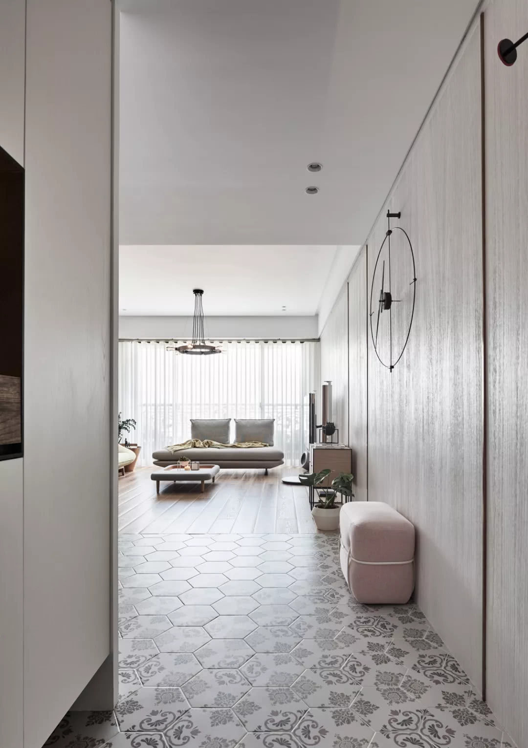 層次不一的雪白、純白、米白??依附在不同材質上渲染開來,爾后鋪上了花磚與選物,儼然是一道考驗功夫的料理,有了鮮甜的食材原味,煎烤蒸煮、佐料擺盤全仰賴設計師大顯身手。