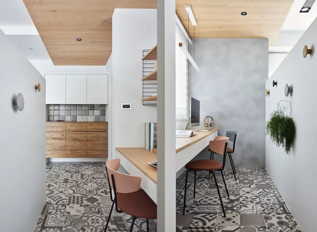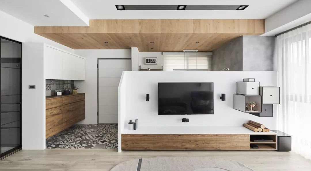 簡單卻又豐富的巧妙設計,開放空間讓生活更舒適。設計師在材質的選擇上盡量的簡單化,大量的木元素搭配純凈的白色調, 要光線的穿透下,營造出潔凈通透的視覺感受,淺灰色沙發,彩色的餐椅,為素雅的空間加入一絲活力與生機。
