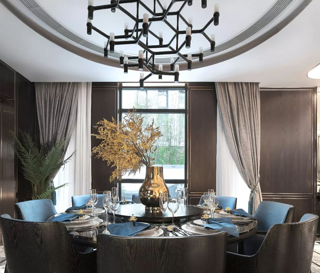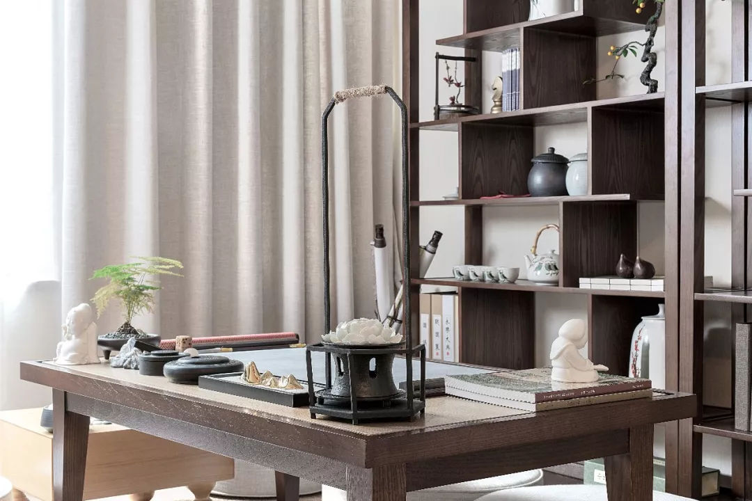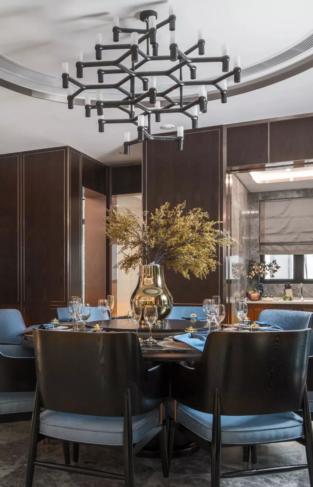 空間線條簡約且有秩序的排布,用色考究,分外雅致。恰到好處的東方印象便在此顯露了,彰顯不凡審美品味。