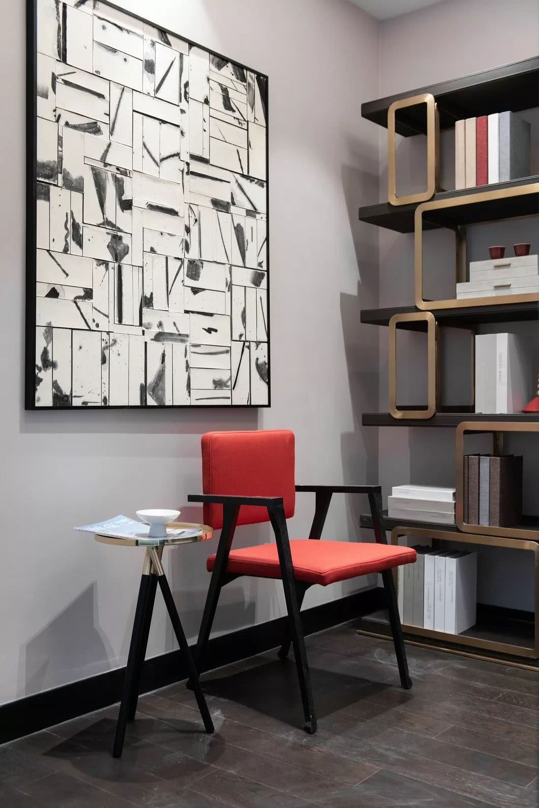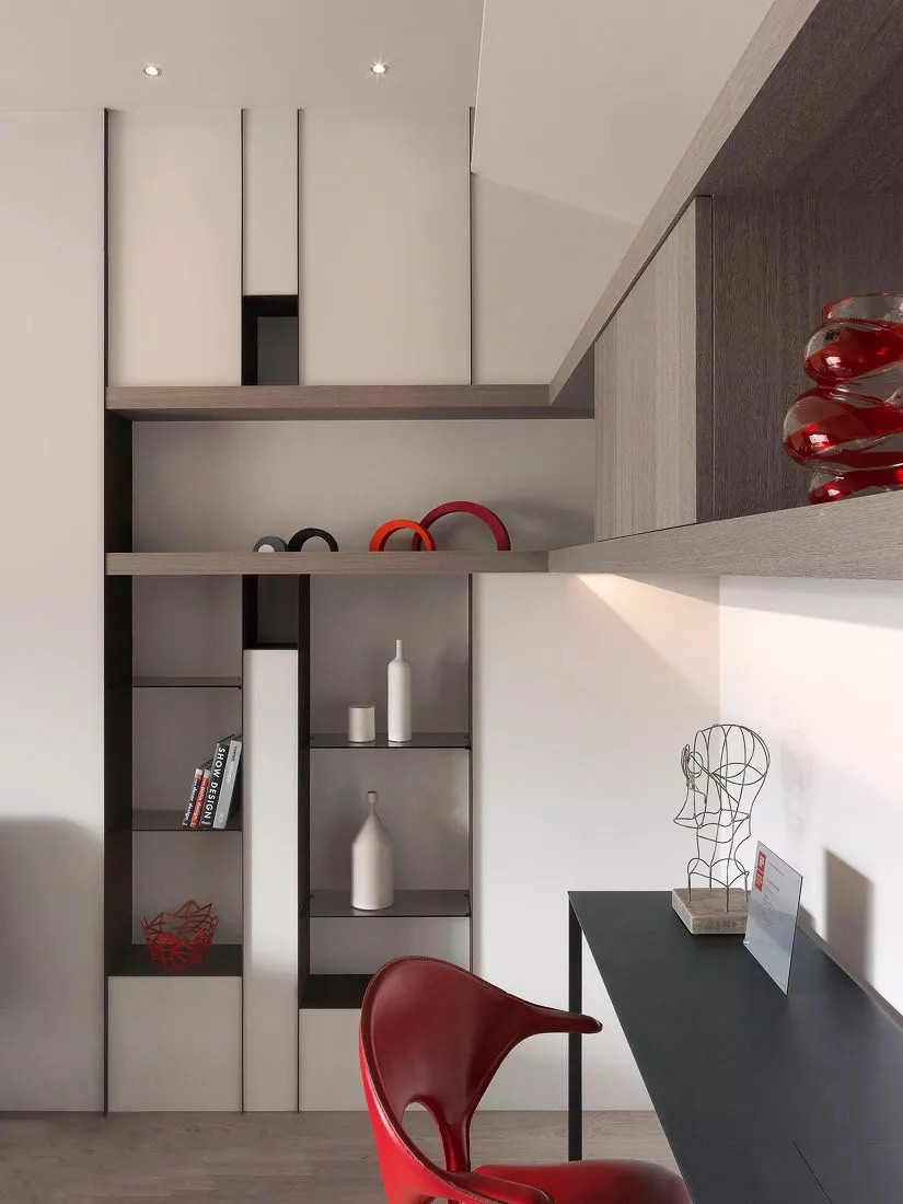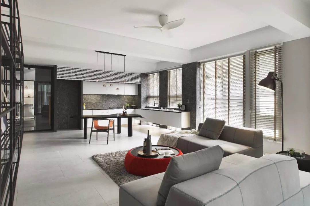 同時,紅與黑是也白色的調(diào)味劑,點綴其中的紅色顯得利落大氣,也減弱了空間的冷清,帶來一絲溫馨。