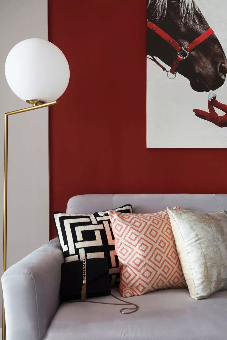 嬌嫩的鮮紅與熱烈的大紅相互交織,空間的層次感被瞬間拉開。濃烈的中國紅,碰上靜雅的歐式沙發(fā),貴族式的底蘊油然而生。
