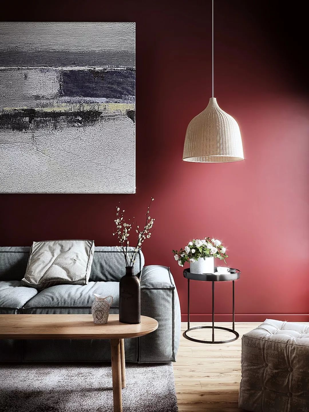 打造一個紅色為主調(diào)的居室空間,一定要搭配其他顏色,降低空間的色彩鮮艷度,達(dá)到飽和、平衡的色彩視覺。