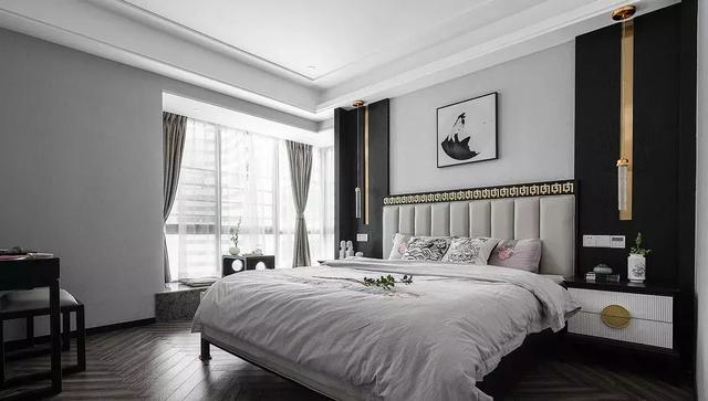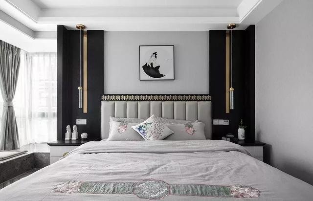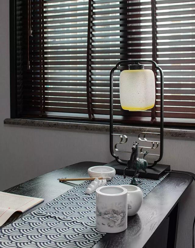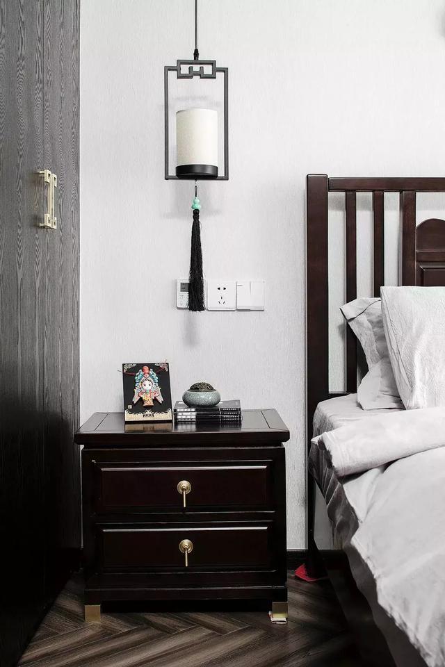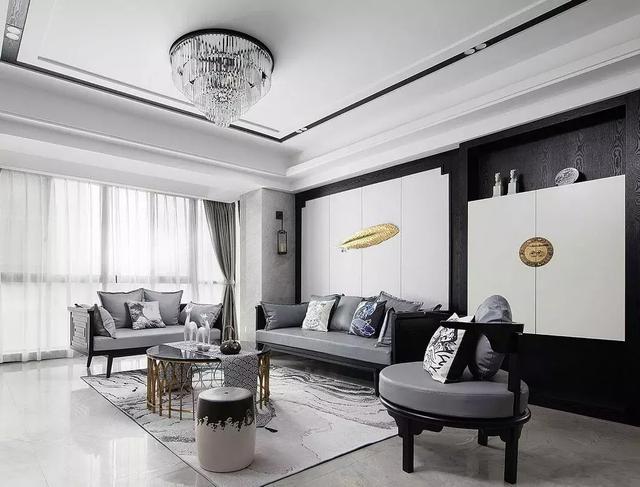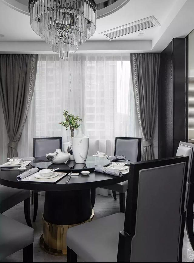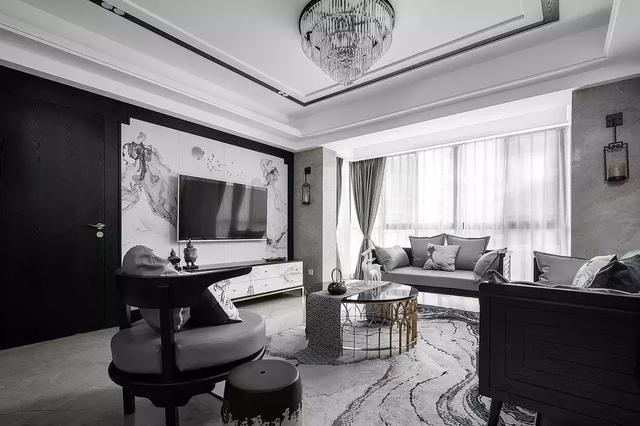 黑色的水晶燈,配以本案,是想表達既現代元素和新中式也是百搭