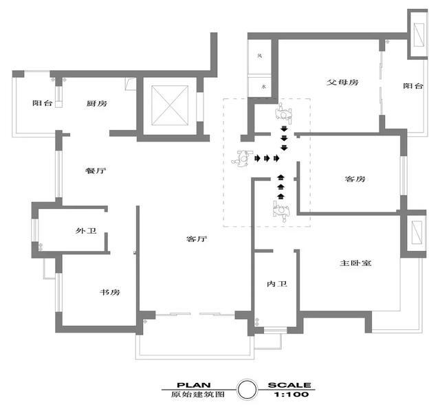 有建筑格局有個缺點,進房室的過道連著三個房間,主臥,父母房和客房。(都在一個過道上)另外主臥的隱私密比較差,因為隔一代人的生活方式完全不一樣。