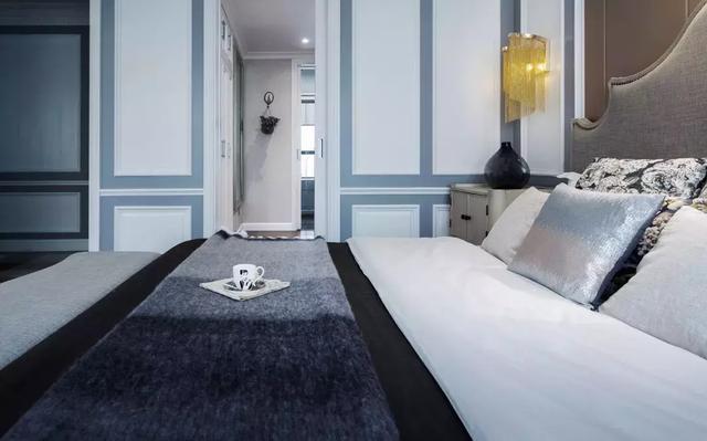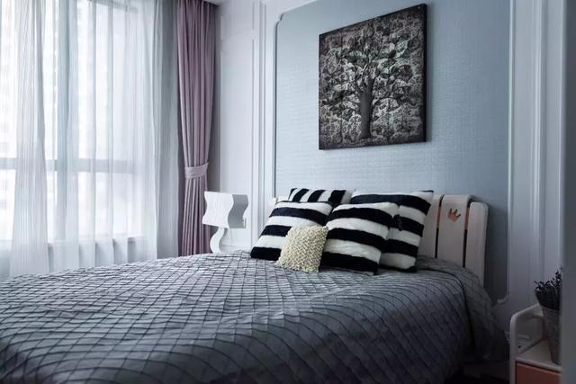 女孩房,設計師用個性相左的灰藍色與黑白條紋組合,碰撞中帶來超強的吸引力。