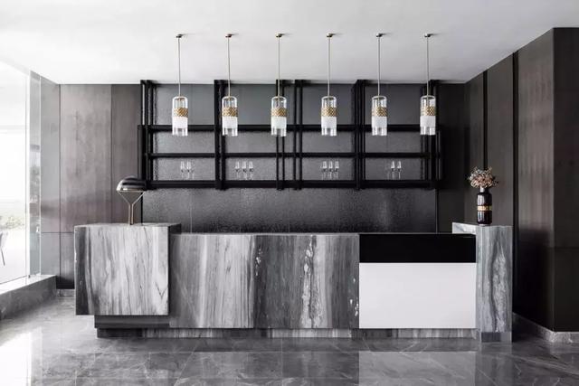 以超大面積的GRG層疊的圖像給人帶來現(xiàn)代感、時尚感的意象。以此流動的姿態(tài)為空間注入一種靈活與自然。如果說浪花是大自然給生物萬象帶來的一注驚喜,那么重復(fù)構(gòu)成帶來的空間洗練的驚喜感則是設(shè)計師刻意而為之的手法。